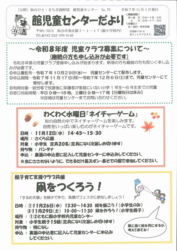 館コミセン(やかたコミセン)の紹介サイトです。 (正式名称:仙台市泉区館コミュニティ推進協議会)